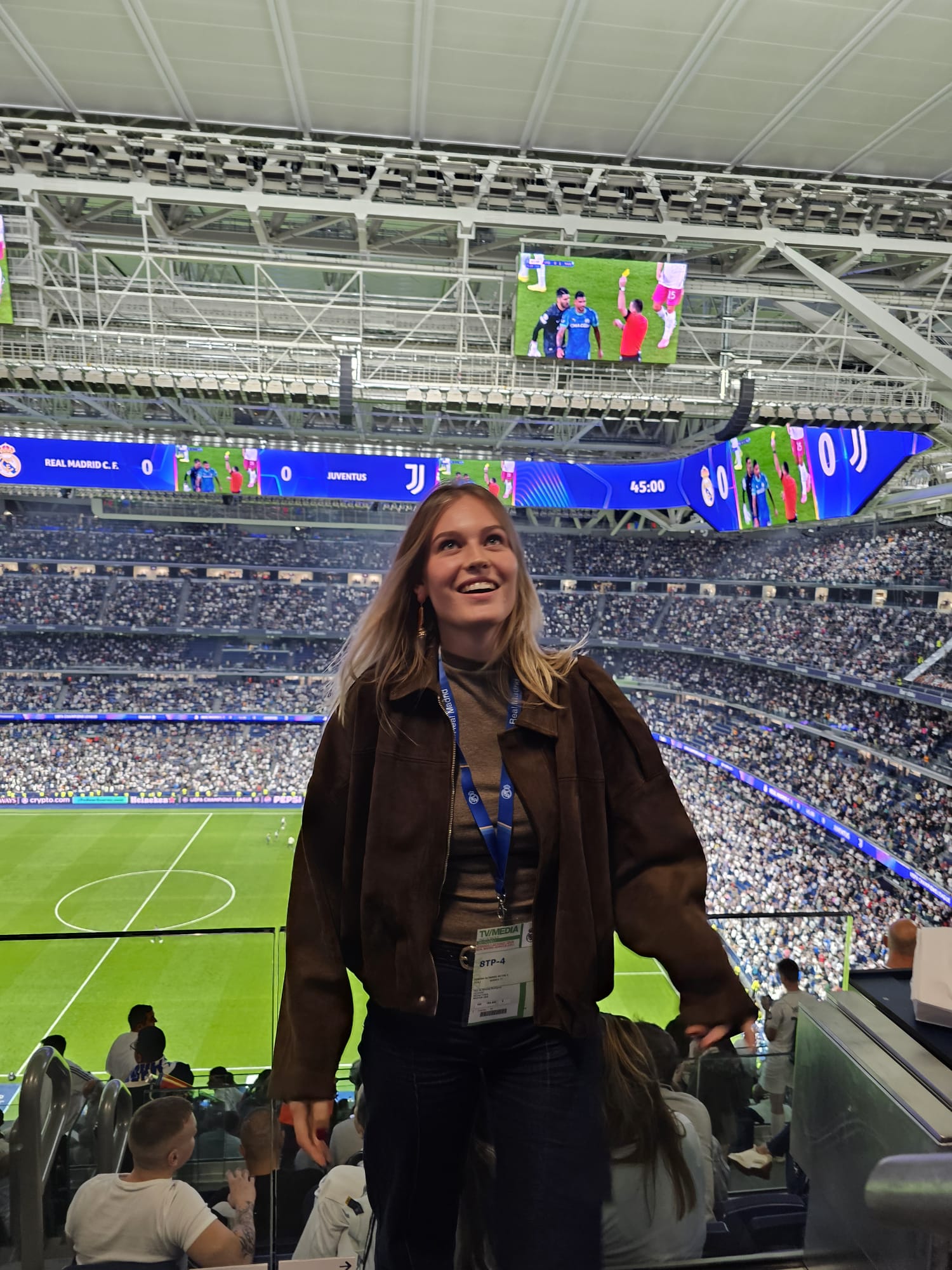 My name is Mette Aben, I’m 24 years old and originally from The Hague, the Netherlands. This summer, I graduated with a Bachelor’s degree in European Studies, and I’ve recently started an exciting new chapter: my Master’s in Communication and Sports Journalism at the Graduate School of Real Madrid.